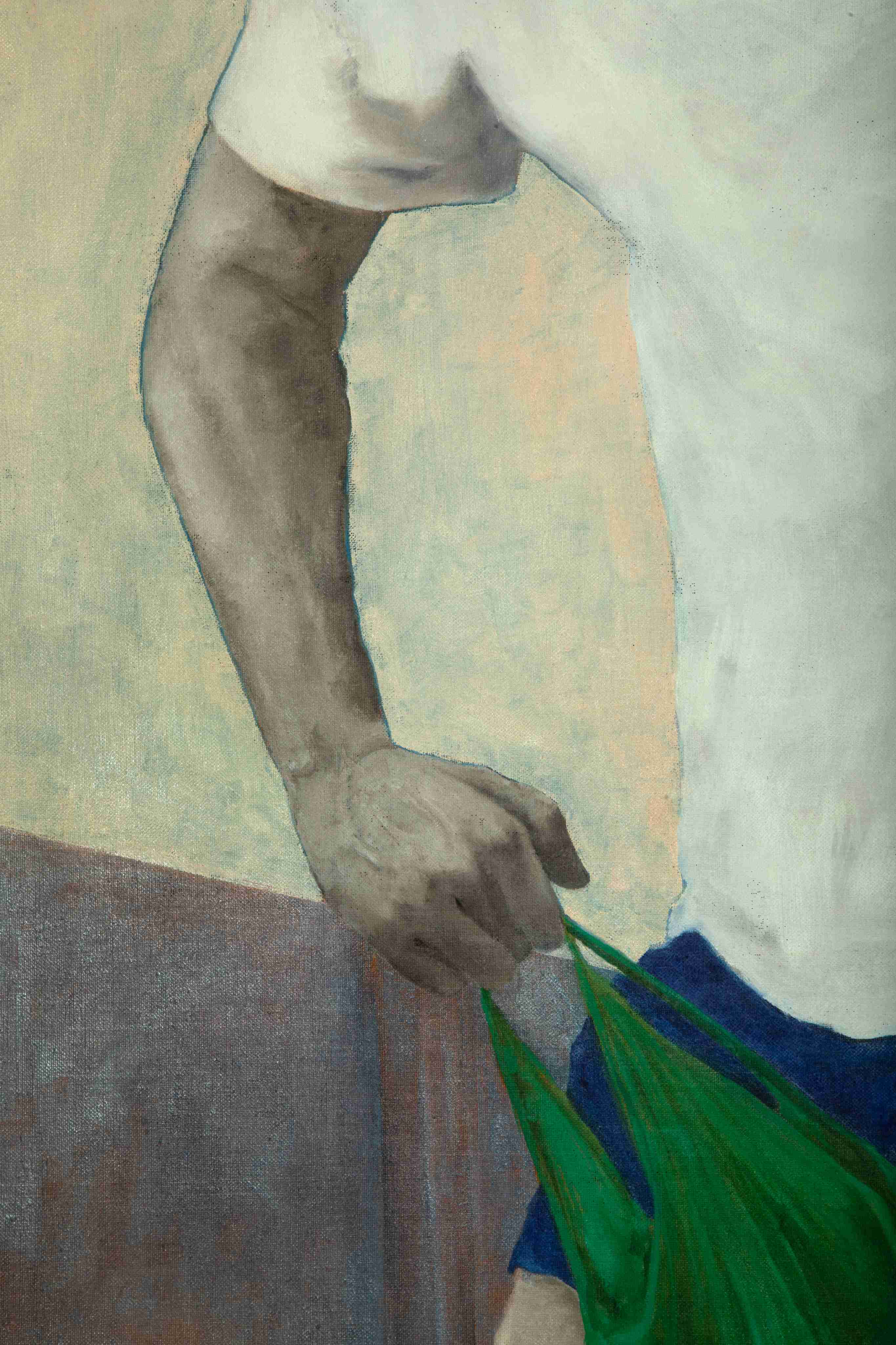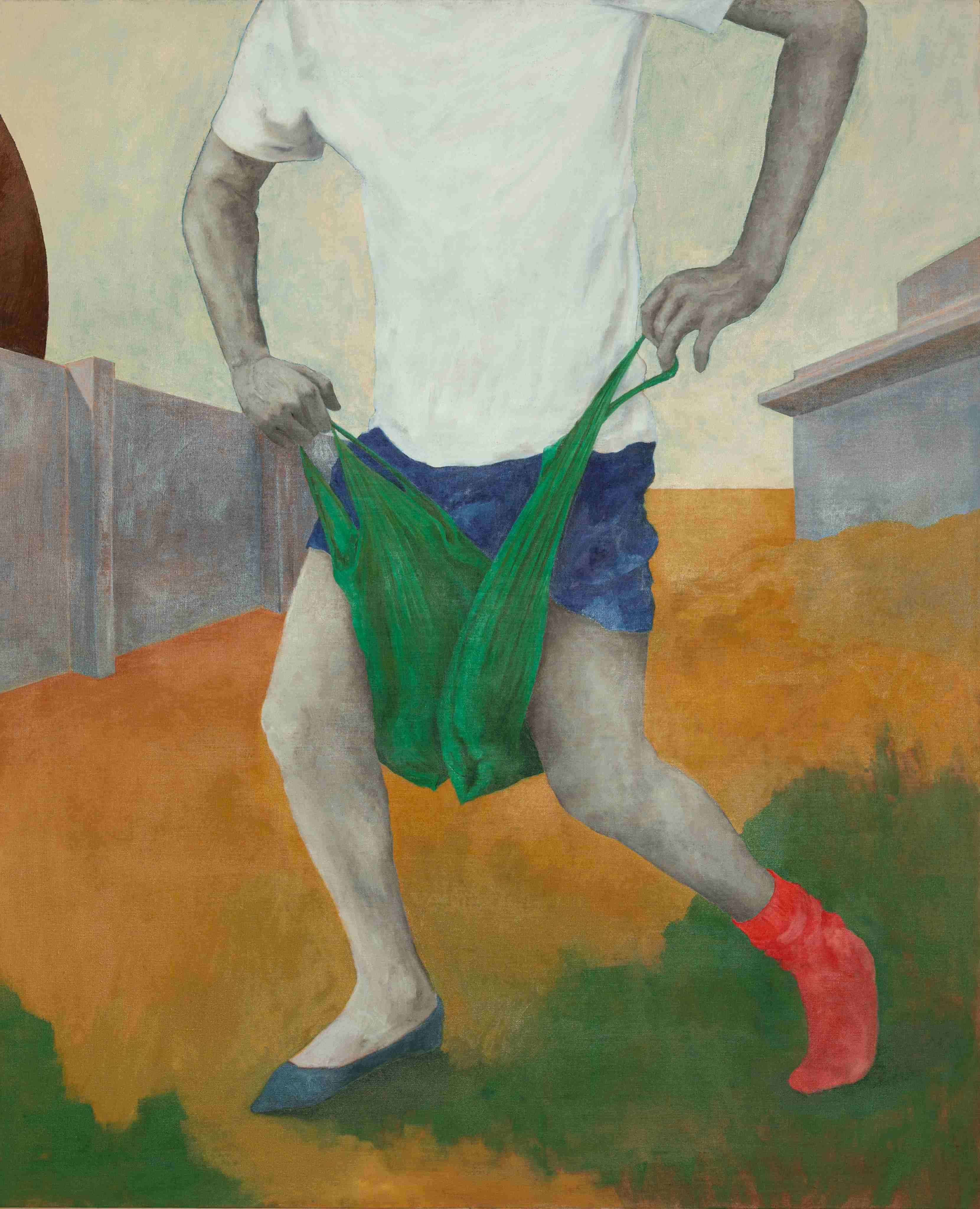 Respino’s drawings and paintings give shape to a world of men who manifest their condition of uncertainty through odd gestures taking place in incongruous settings. Where figures are absent, their presence remains palpable thanks to the scattering of discarded and oddly defunct objects riddled with a sense of past presence.